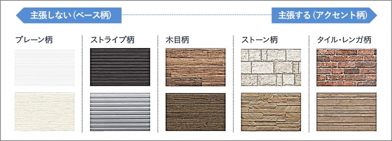 自分らしい外観を演出する為に、外壁の張り分けを取り入れてみましょう。家全体の雰囲気を左右するベース外壁、個性を引き出すアクセント外壁を組み合わせます。