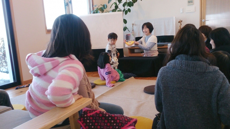 続いて、紙芝居のはじまりはじまり~♪雪だるまを作ったり、そりすべりをしたり、楽しい動物さんのお話で、みんなニッコニコ~♪寒さなんて、へっちゃら!外で遊びたくなっちゃったね