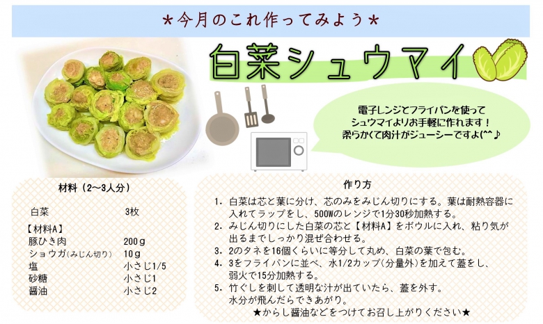 11月は、白菜シュウマイです!
