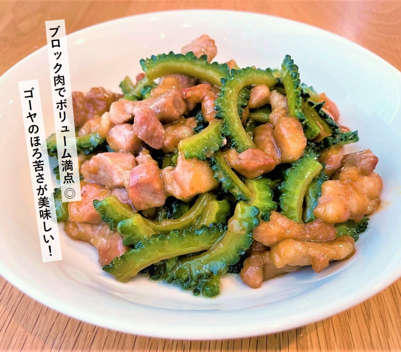 ゴーヤの苦み成分は胃腸の状態を整え、食欲を促します。豚肉はタンパク質とビタミンB1を多く含み、ゴーヤと組み合わせて摂ることで夏バテ防止効果が期待できます!