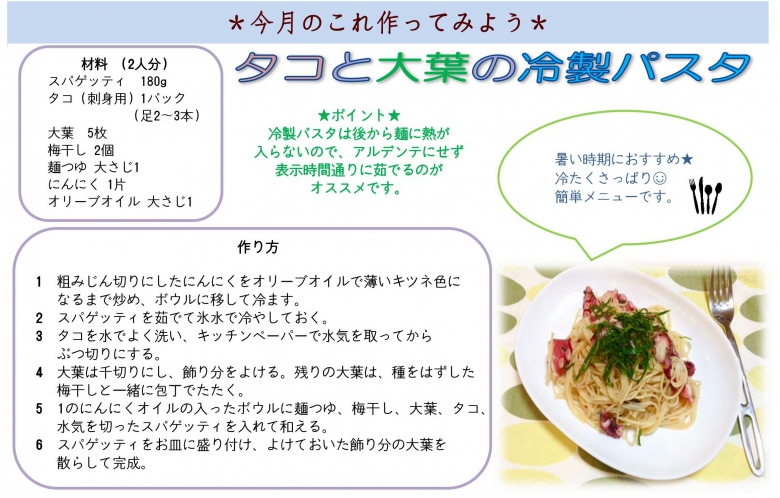 冷たくサッパリ簡単パスタはいかがでしょうか??