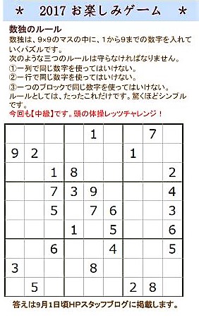 数独パズル中級編いかがでしたか?