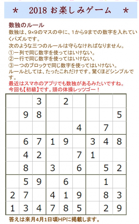 3月号の数独パズルも初級編でしたsmiley