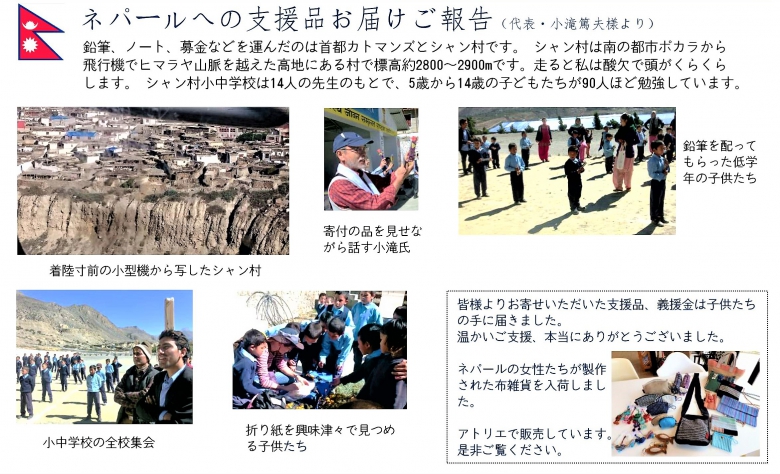 ネパールへ支援品お届けのご報告