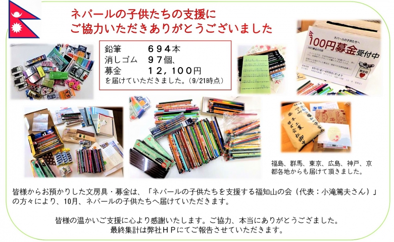 ネパール支援へのたくさんのご協力ありがとうございました