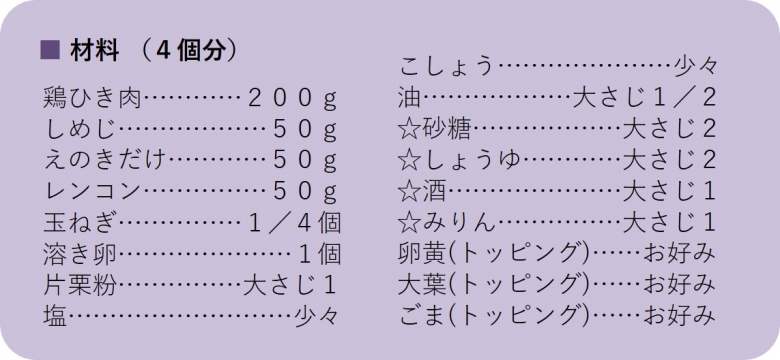 お肉の量を減らし、旨味たっぷりのきのこと、食感が楽しいレンコンでかさ増しすることで、ヘルシーな仕上がりになります。
