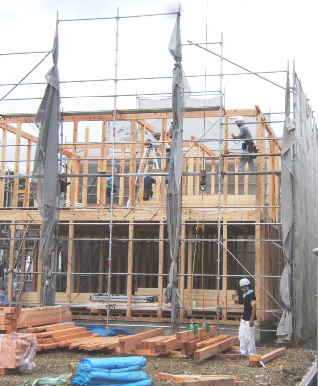 さて、今日は、雨も上がりました!大切なお客様の上棟の日です。おめでとうございます!今、職人さんたちの心と技で、着々と作業が進んでいます。完成まで、職人・スタッフ一丸となって、お客様の夢を叶えるため、邁進していきたいと思っています。
