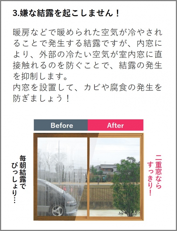 昨年11月より開始したリフォーム補助金「先進的窓リノベ事業」予想以上の反響があり、今現在、工事発注から納品まで約3ヵ月ほど待っていただいている状態です。今回は制度の紹介ではなく、内窓を設置するメリットについて改めてご説明させていただきます。