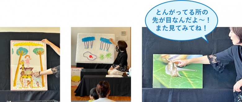かたつむりの絵本からスタート!西山先生がかたつむりの写真を見せてくれました。