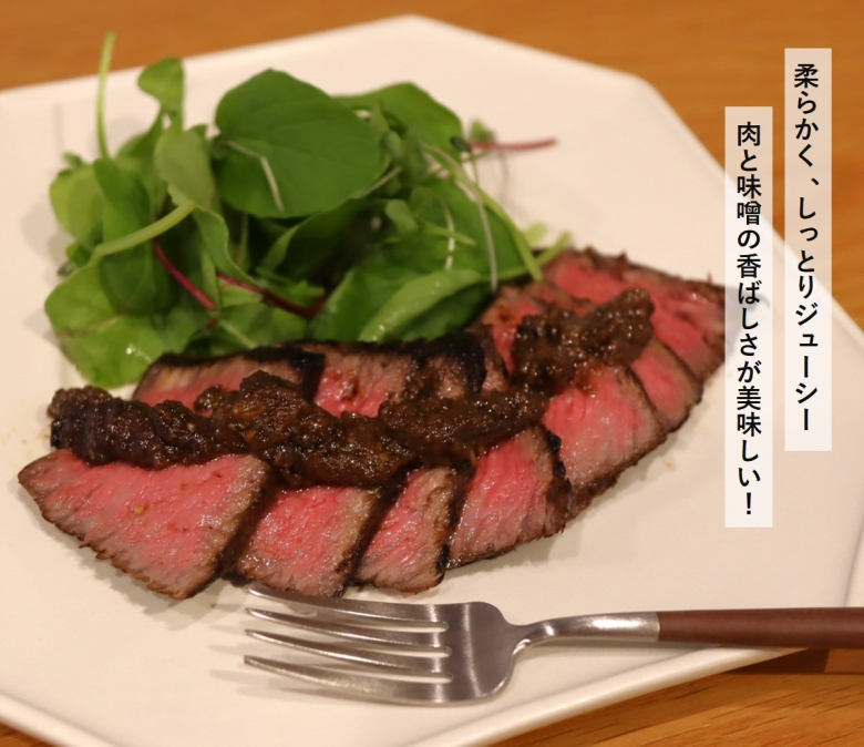 ずっと作ってみたかったローストビーフにチャレンジしました。切ってみるまで不安でしたが、良い感じに仕上がっていました!味噌の効果で柔らかくジューシー、味もよく染み込んでいて香ばしくとても美味しかったです♪