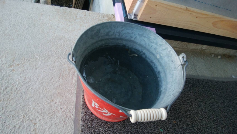 ※この日は寒くて防火用のバケツは凍っていました・・・・職人さんをはじめ、外仕事の方は寒いですが、頑張ってください。