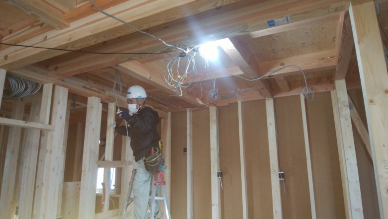 HASI HAUSでは、ちょうどこのタイミングで営業担当、設計担当、工務担当、電気屋さんとお施主さんで電気立ち合いをさせていただきます。