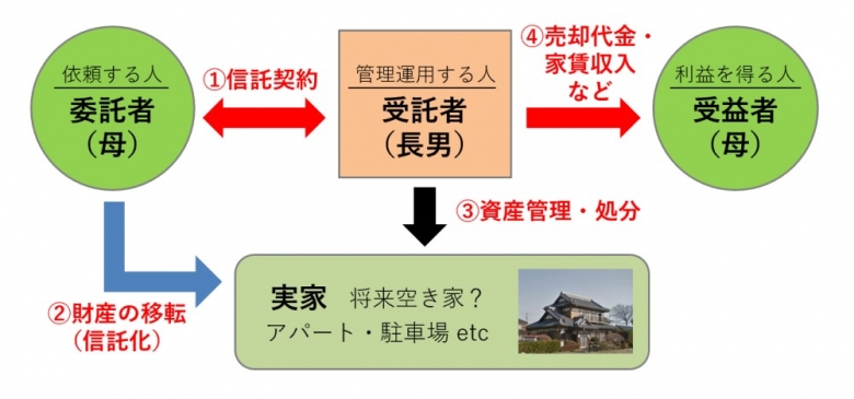 財産を所有する人が、特定の目的(例えば、家の売却)に従って、信頼できる家族にその財産を託し、その管理や処分を任せる仕組みで、財産管理の一つの手法です。