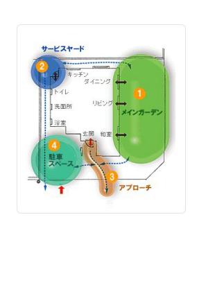 アプローチやサービスヤードへのスムーズな動線の繋がりを考えます。