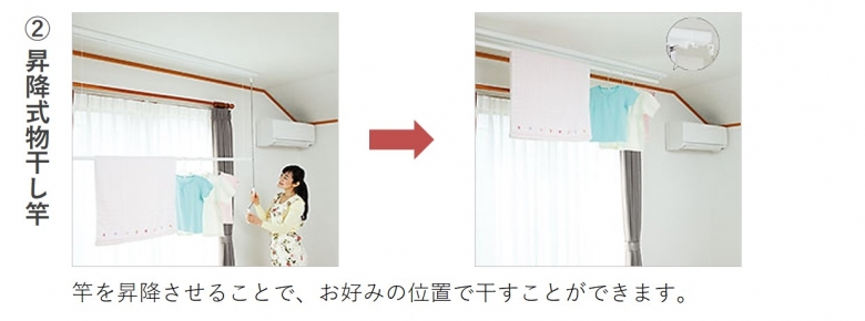 2階のホールや吹抜けに面した場所に干すスペースがある家は、近くにエアコンを設置し、除湿運転をすると、乾きやすくなります。
