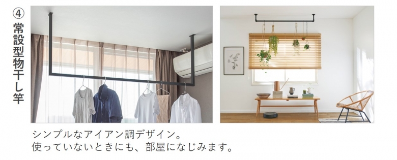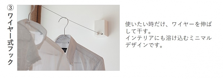 物干し金物を取り付けると、場所を取らず部屋もスッキリします。デザインもいろいろ。お部屋のインテリアに合わせて、選んでみてはいかがでしょうか。