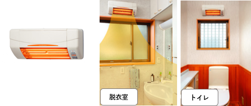 脱衣室に暖房機を取り付ける事で、ヒートショックの大きな原因、家内での急激な温度差の発生を防ぐ事ができます。