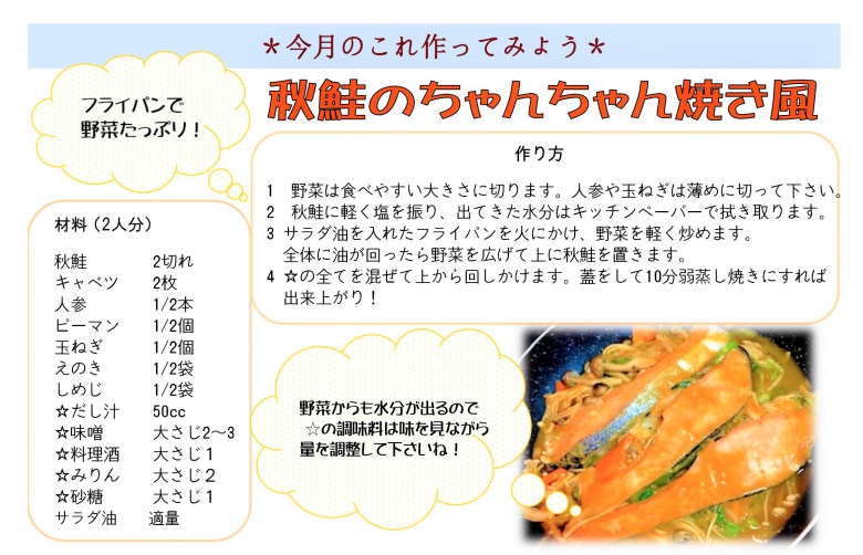 今月は秋鮭のちゃんちゃん焼き風です(^_^)
