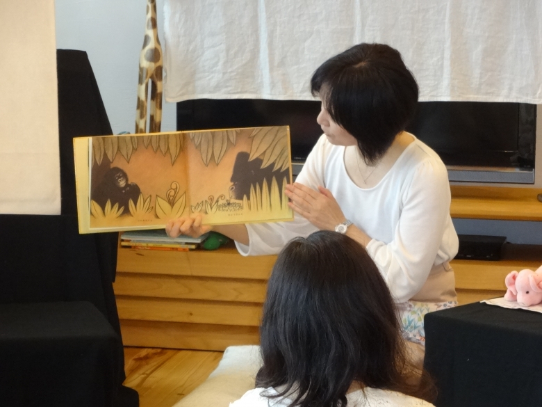 『だいすき』っていう気持ちがいっぱいの絵本『ちびゴリラのちびちび』。すべての子どもたちの成長が愛おしく思えます。愛情をいっぱい受けて、みんなすくすく育ちますようにと願っています。このお話の時、お母さんがとても温かいまなざしでお子さんを見つめておられたのが、印象的でしたheart