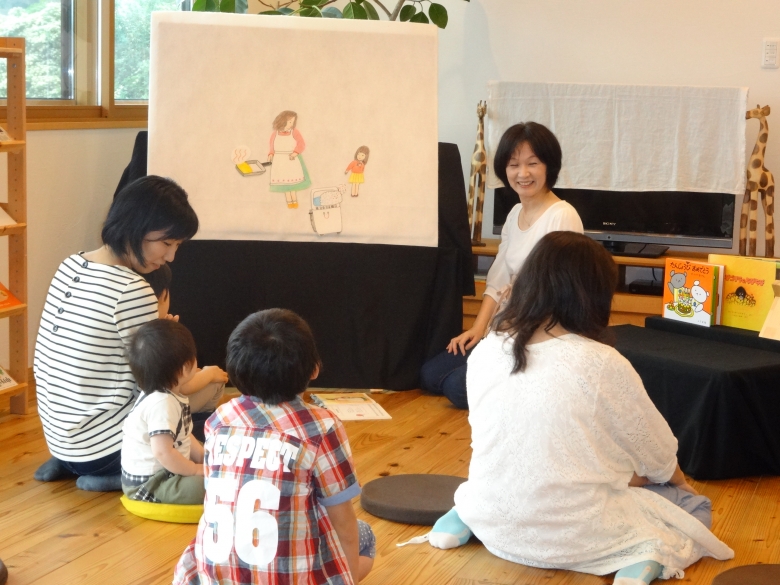 今日は、アトリエで『絵本のじかん』が開催されました。お母さんと手をつないだかわいいちびっこちゃんの他、将来保育士を目指しているという高校生の女の子も来てくれましたsmileyどんなおはなしかな~♪とみんなワクワク♪お話ボランティアの皆さんもニコニコ♪