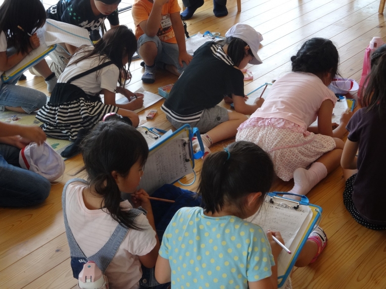 最後は、床材に使用されている杉の無垢板に似顔絵をかいてもらいました。