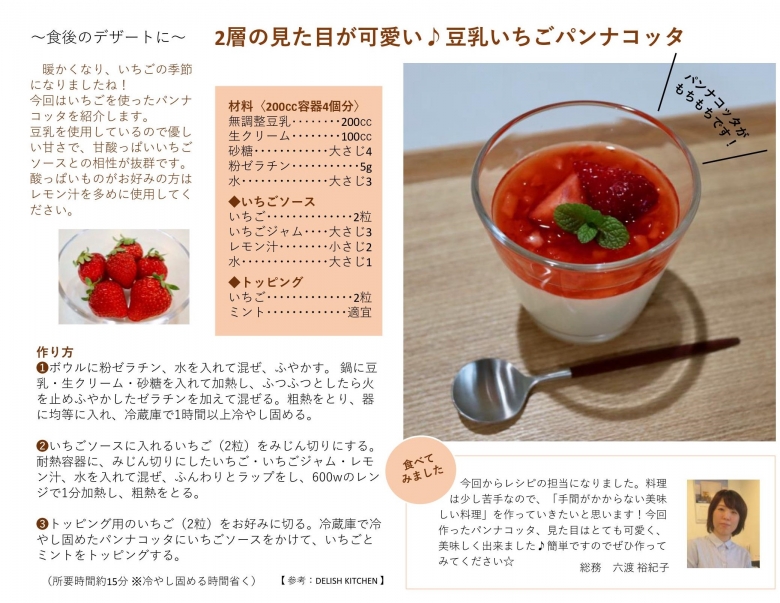 ~食後のデザートに~ 2層の見た目が可愛い♪豆乳いちごパンナコッタ