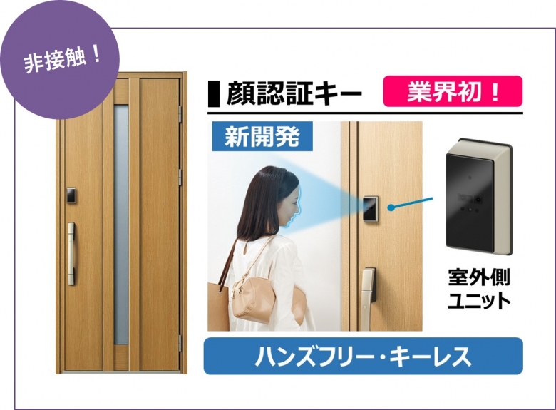 「顔認証キー」は、自動開閉スライディングドアと組合せたバリアフリー対応や、在宅医療・介護における来訪者管理(医師・看護師・介護士など)、玄関で個人識別することで宅内設備機器との連携サービス(住宅IoT)など、今後に向けて様々な拡大利用が見込まれているようです。玄関ドアの室外側に設置された2つの内蔵カメラは、顔を立体的に捉える生体認証(3D認証)の技術を採用し、写真やダミーによる不正解錠を防止します。