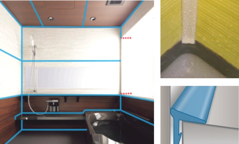 クリナップのお風呂(アクリアバス)では、青色の部分すべてにクリンパッキン(樹脂製)の目地材を使用しています。カビを簡単に落とせて、浴室をキレイに保ちます。