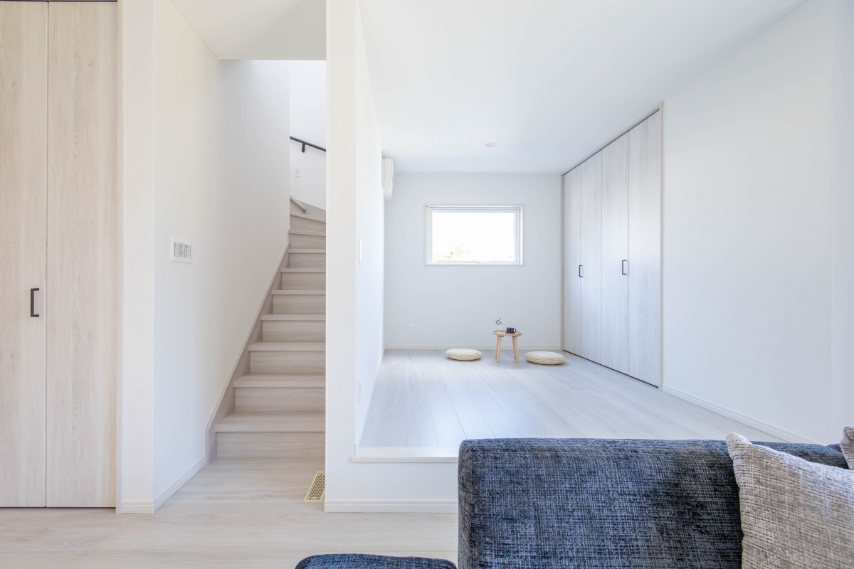 LDKとゆるやかにつながる小上がり洋室は、第二の居間としても活躍する多機能空間に。家族の気配を感じながらも、段差が生み出す適度な独立があります。
