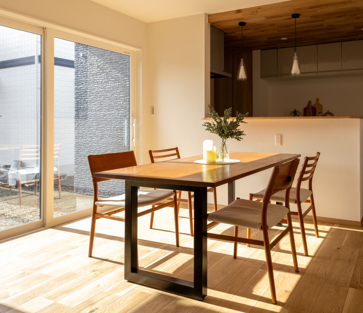 光の入り方や外からの視線にも配慮し、自然光をたっぷり取り込みながら、落ち着いて過ごせる空間に仕上げました。